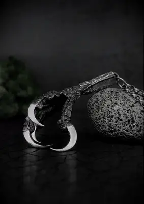 Un formidable pendentif islandais de Raven Talon, jeté en argent sterling solide. Provenant éthique des rives noires de l'Islande, ce collier Raven Claw est fini à la main pour créer des ombres et des reflets détaillés, accentuant toutes les textures complexes de la coulée naturelle. En revanche, les serres étincelantes sont polies individuellement à un éclat élevé.